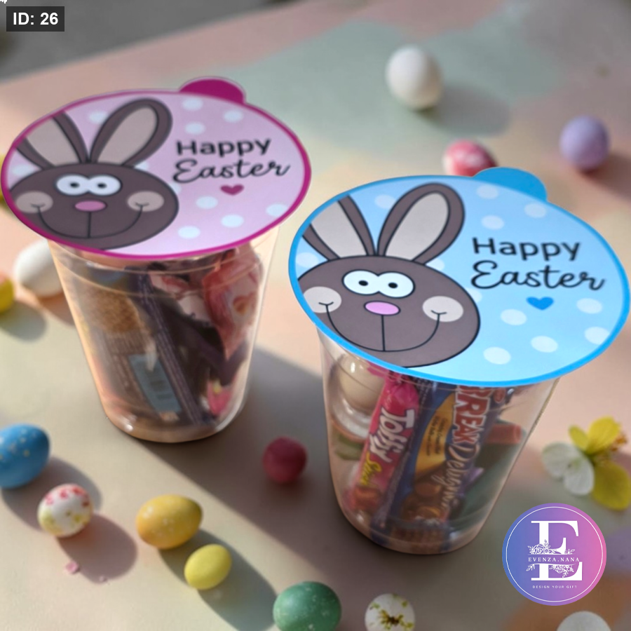كاس بلاستيك يحتوي على حلويات و بالون و كلاي